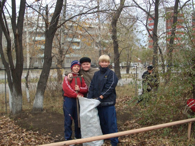 Акция "Я здесь живу" (уборка школьной территории) осень 2006 год |